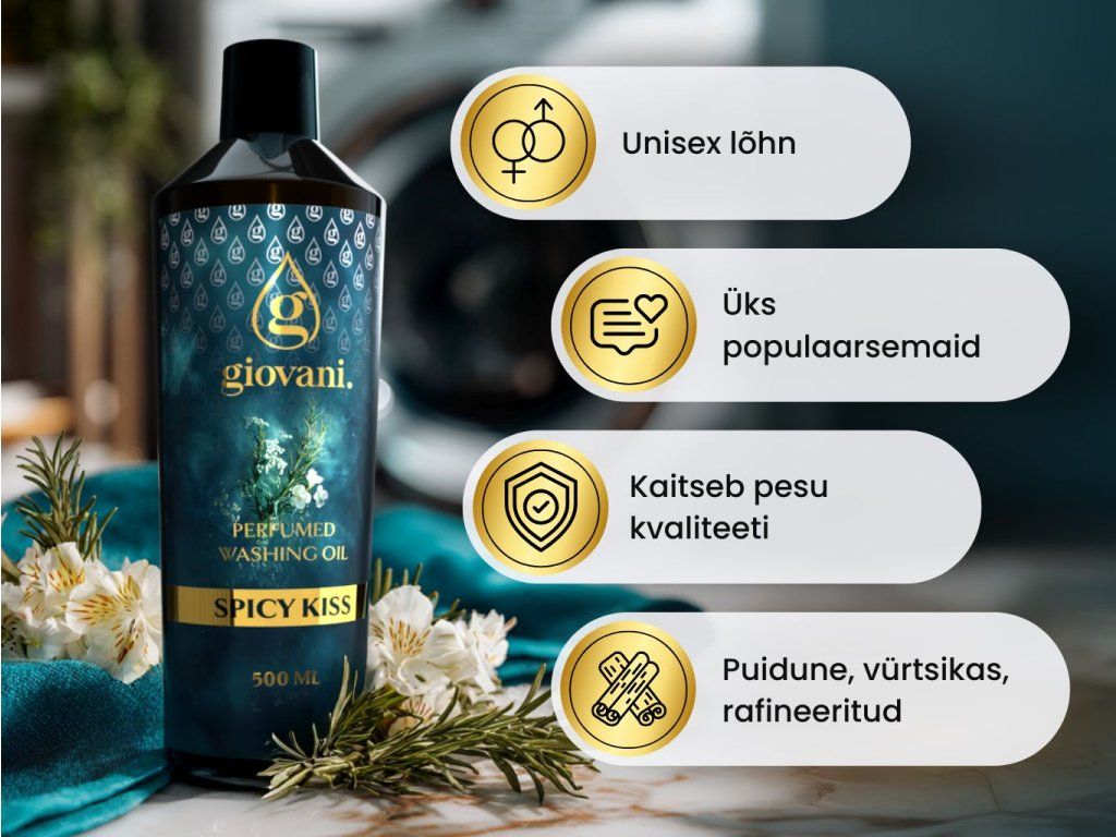Spicy Kiss pesuparfüüm vürtsikate nootidega on ideaalne värskendus pesupesemisele.